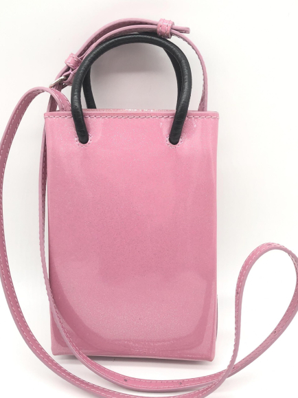 Balenciaga PRE-OWNED Pink Glitter Shopping Phone Holder Bag