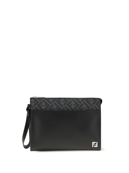 Fendi Black Calf Leather Bos Taurus Clutch Bag