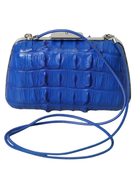 Balenciaga Blue Exotic Skin Leather Shoulder Crossbody Box Clutch Bag