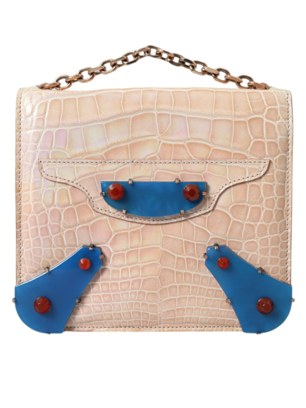 Balenciaga Beige Blue Agate Exotic Leather Gold Chain Purse Bag