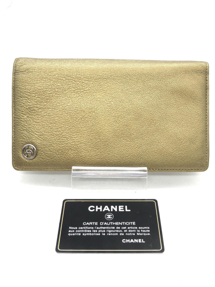 Chanel PRE-OWNED Gold Tone Caviar Leather Bifold Wallet