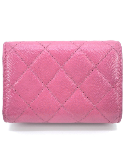 Chanel PRE-OWNED Pink Leather Quilted Flap Wallet