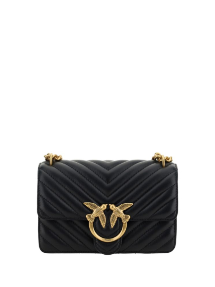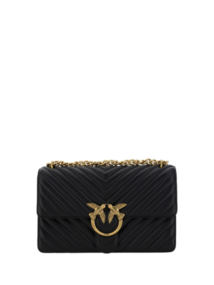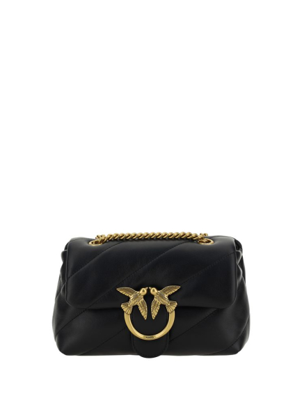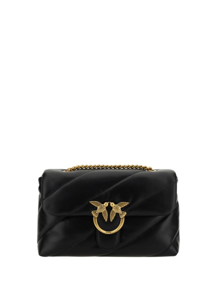 PINKO Black Calf Leather Bos Taurus Shoulder Bag
