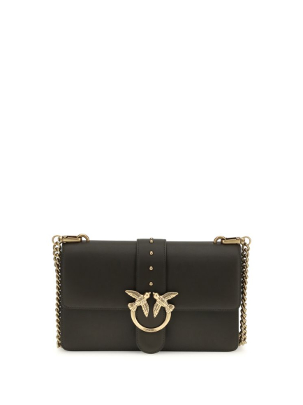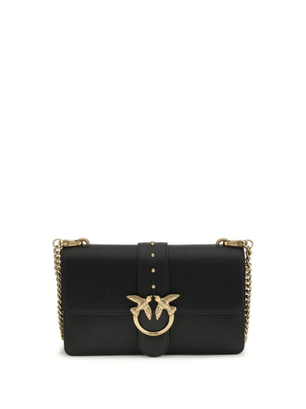 PINKO Black Calf Leather Bos Taurus Shoulder Bag