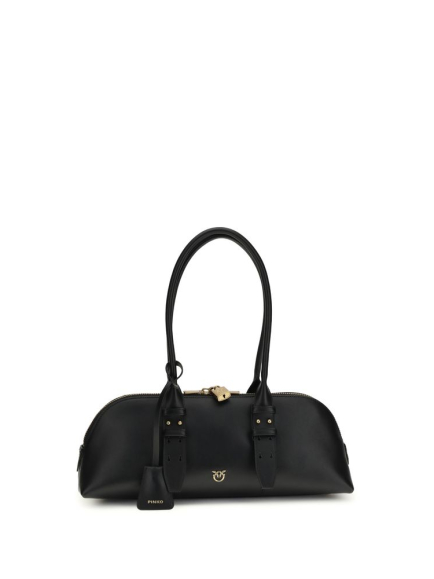 PINKO Black Calf Leather Bos Taurus Shoulder Bag
