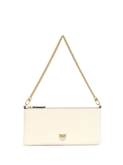 PINKO White Calf Leather Bos Taurus Shoulder Bag