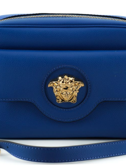 Versace Blue Calf Leather Camera Shoulder Bag