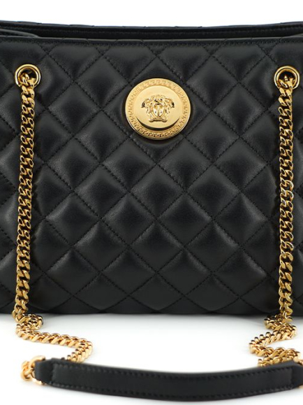 Versace Black Quilted Nappa Leather Medusa Tote Handbag