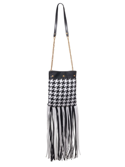 Versace Black And White Leather And Textile Shoulder Bag