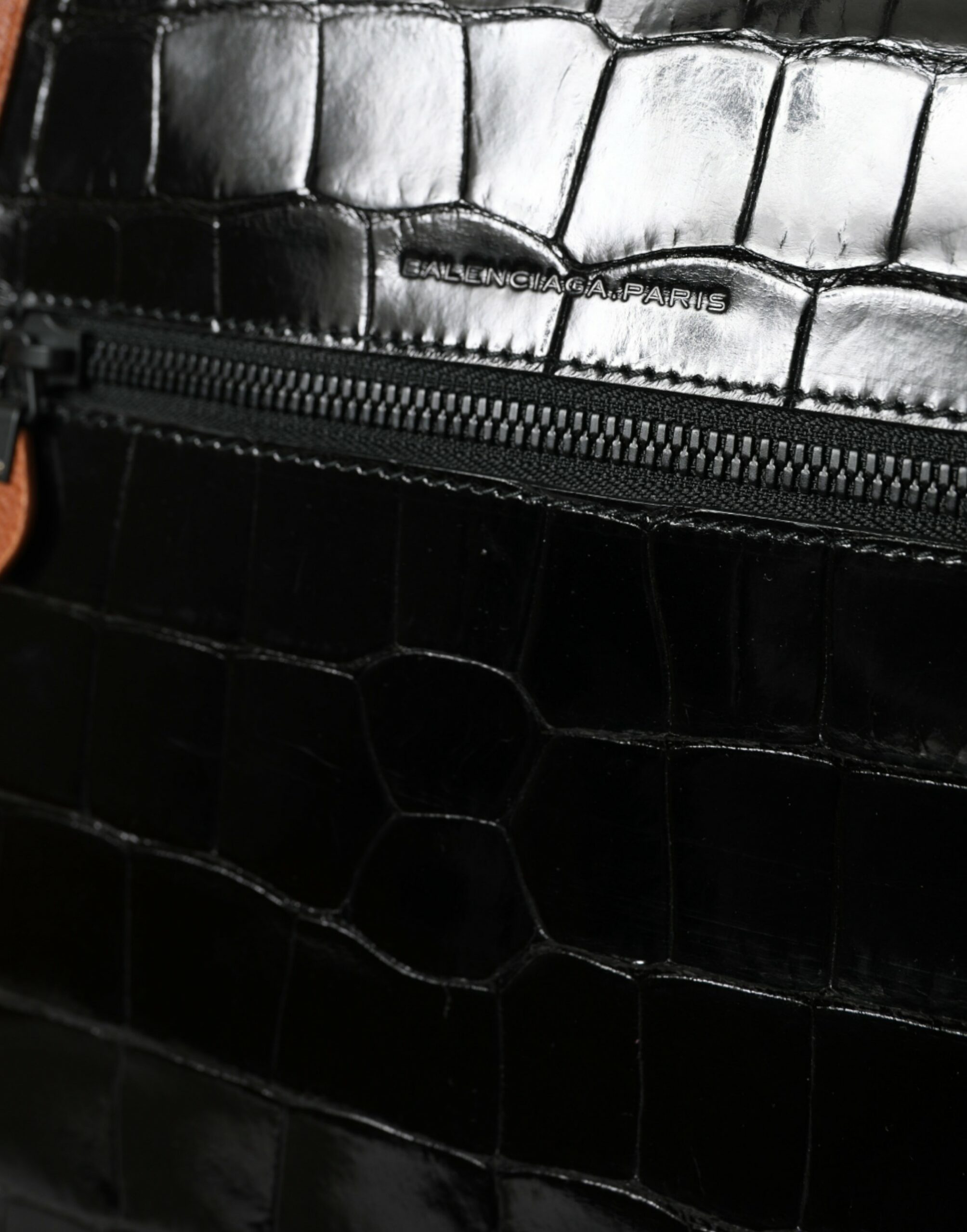 Balenciaga Black Brown Exotic Skin Leather Vertical Crossbody Purse Bag