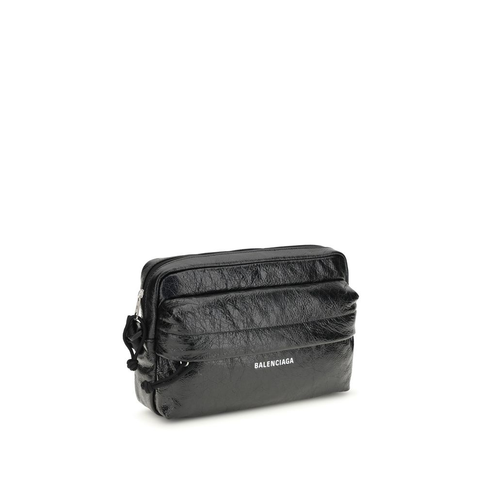 The Explorer Bag by Balenciaga is crafted from soft lambskin leather and features a functional, contemporary design. It includes a top zip pocket and a front zip pocket, ideal for keeping essentials organized. The Balenciaga logo is displayed on the front, while the adjustable and removable shoulder strap allows for versatile wear. Silver-tone hardware adds a sleek, modern finish to the overall look.