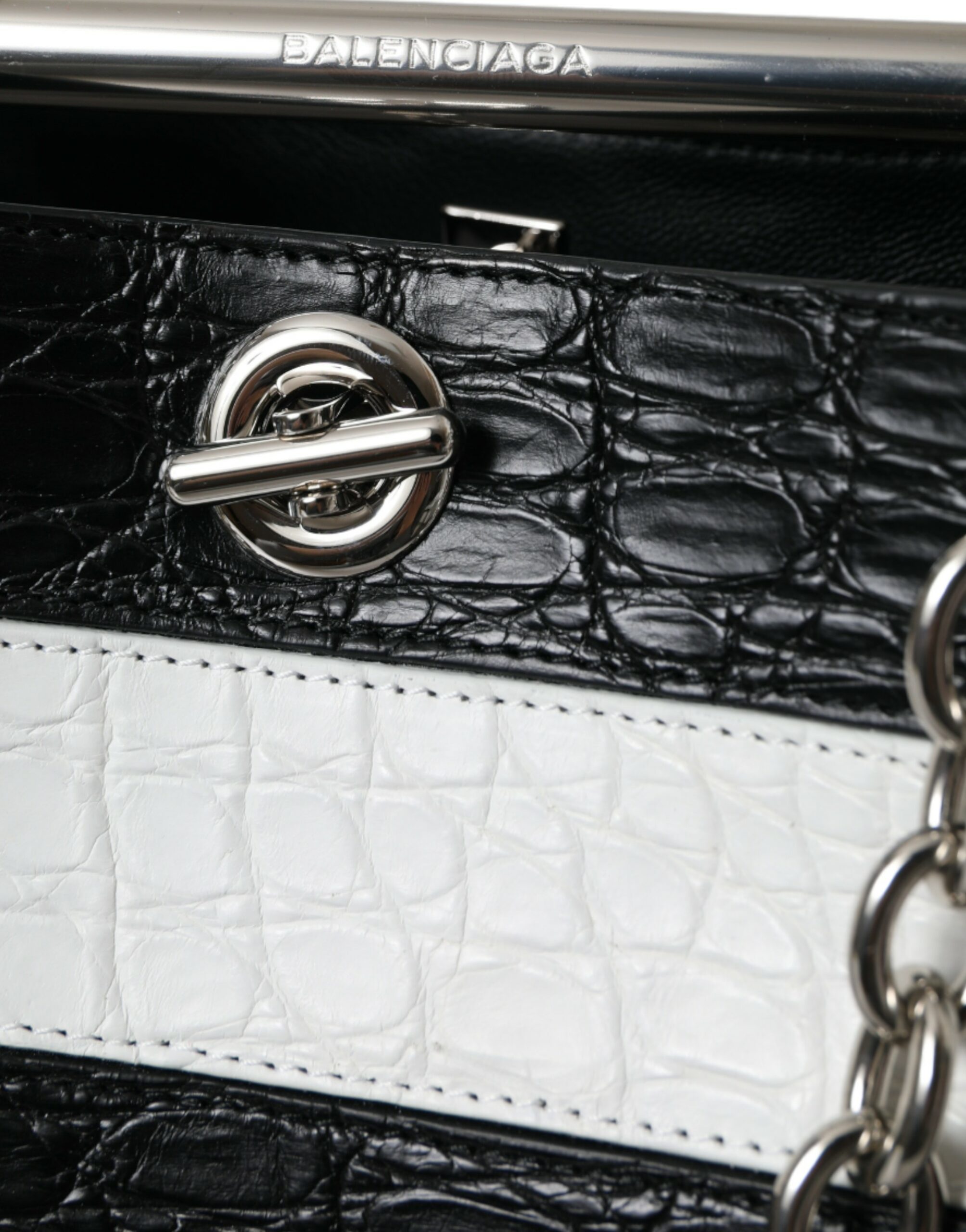 Balenciaga Black White Striped Exotic Skin Leather Maxi Bucket Tote Bag