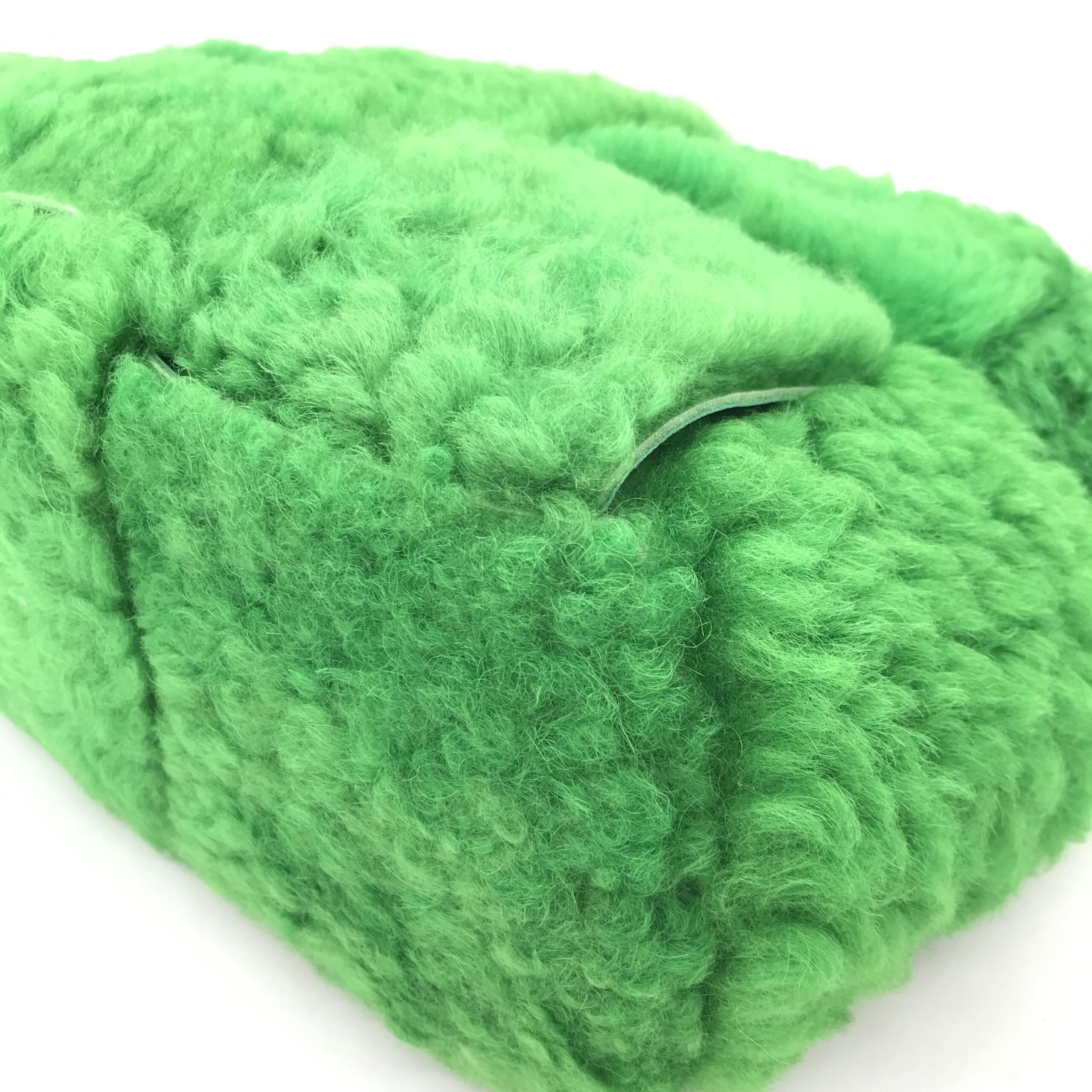 The exterior of the bag features the iconic Intrecciato weave, a signature of the brand, crafted from plush shearling in a captivating shade of green. This unique texture not only adds a touch of sophistication but also ensures durability and timeless appeal. While there is minor wear throughout, it only adds to the character of this elegant piece, making it a true collector’s item.