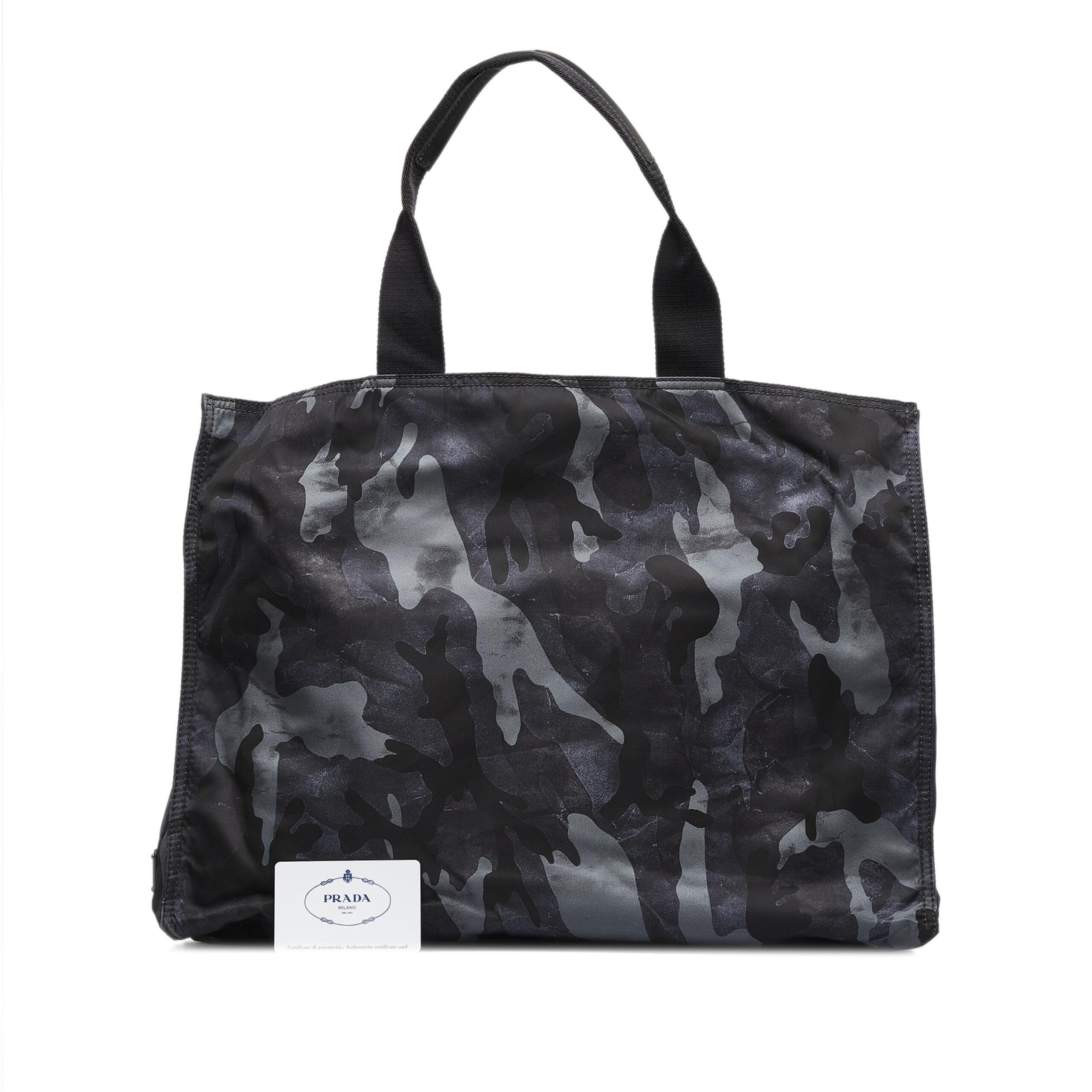 Prada PRE-OWNED Black Camouflage Tessuto Nylon Tote Bag